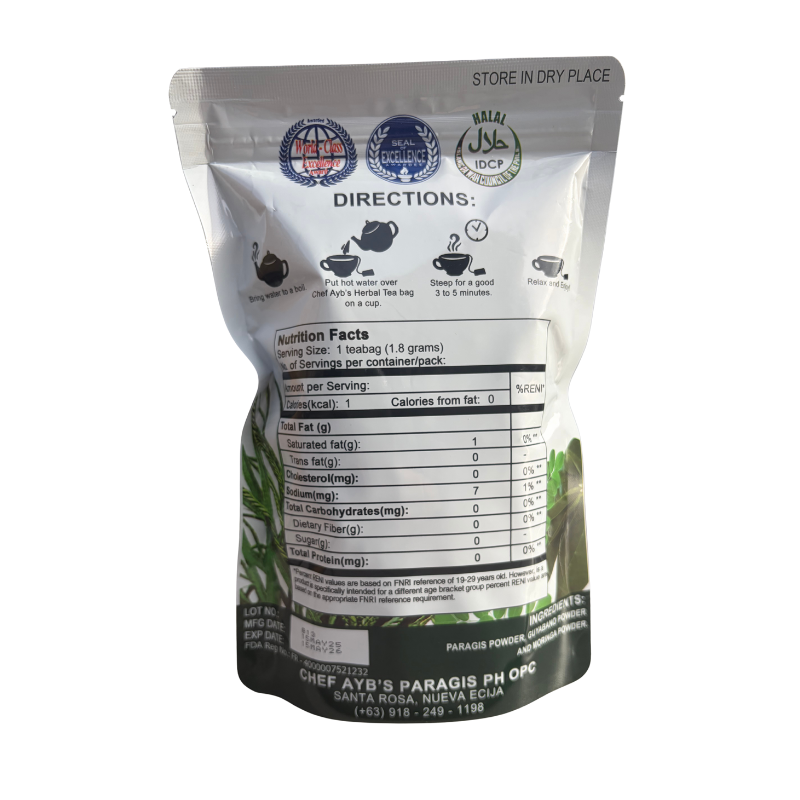 Embrace the goodness of nature with every soothing cup of Paragis, Moringa, and Guyabano Tea. Whether enjoyed as a morning ritual or a calming evening indulgence, this exquisite blend promises to rejuvenate, refresh, and restore balance to your life.