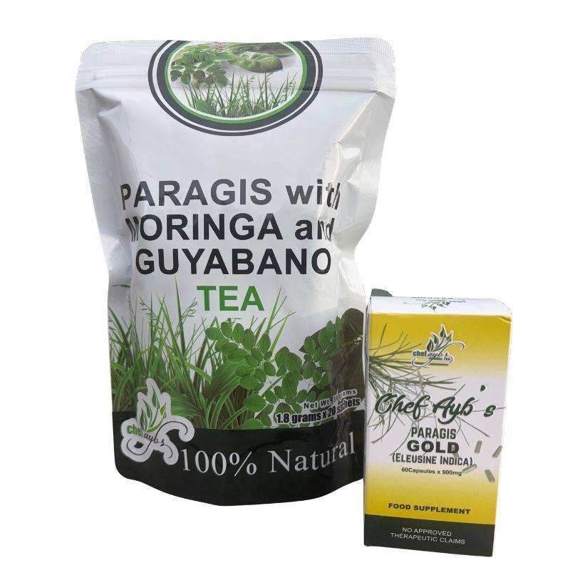Introducing Chef Aybs’ Dynamic Duo, a powerhouse combination of wellness and vitality featuring Paragis, Moringa, and Guyabano Tea alongside Paragis Gold Capsules. Crafted with care and expertise, this duo offers a holistic approach to health and well-being, sourced from nature’s finest treasures.
